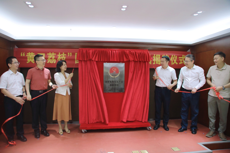 为进一步发挥“黄田荔枝”品牌价值、促进黄田荔枝产业高质量发展打下坚实基础,2025年7月15日,“黄田荔枝”国家地理标志产品揭牌仪式在宝安区航城街道举行,深圳市市场监管局(知识产权局)、宝安区相关负责同志出席,深圳市市场监管局(知识产权局)相关部门、宝安监管局、宝安区航城街道及相关行业协会代表参会,为“黄田荔枝”地理标志产品揭牌,并为获准使用“黄田荔枝”地理标志专用标志的企业颁发牌匾。