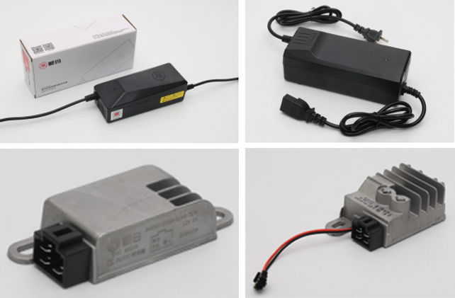 长寿命充电器(新国标充电器、千分位长寿命充电器、中功率充电器、大功率充电器);电动车转换器(6A单耳转换器、8A转换器、10A转换器、15A转换器);电机/电机控制器;怠速启停控制器;无钥匙启动PKE/BCM;车载USB充电器;侧翻开关/倾斜传感器。