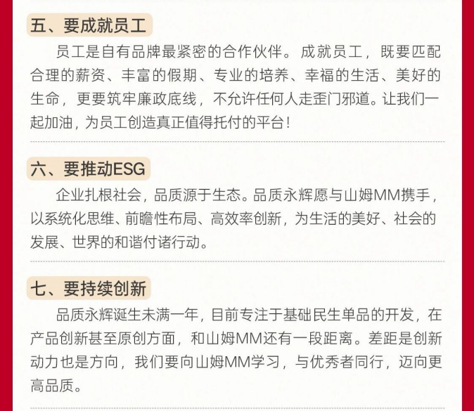 信中还呼吁秉持“六要”推动行业发展,即“要做更好的品质、要做清洁的配方、要做美好的价格、要成就员工、要推动ESG、要持续创新”。