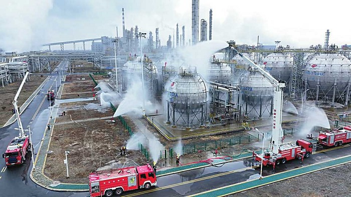 10月24日,市场监管总局特种设备局、新疆维吾尔自治区市场监管局在乌鲁木齐甘泉堡经济技术开发区——国能新疆化工有限公司举行“使命先锋·2024”特种设备事故应急演练,现场模拟液氨球罐底部压力管道爆管泄漏引发火灾的紧急情况下救援处置全过程。