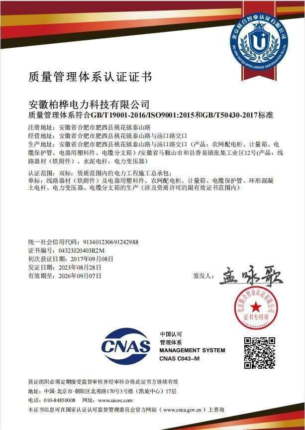 3.资质与认证:先后通过ISO9001质量管理体系、ISO14001环境管理体系、OHSAS18001职业健康安全管理体系、ISO50001能源管理体系认证,荣获“绿色电力认证证书”“绿色供应链等级认证证书”“碳足迹(标签)认证证书”“智能工厂认证证书”,多款产品通过3C及专业认证,实力获权威认可。